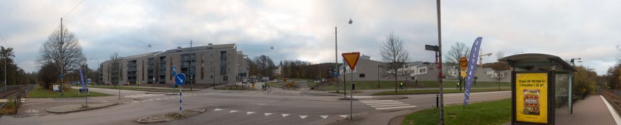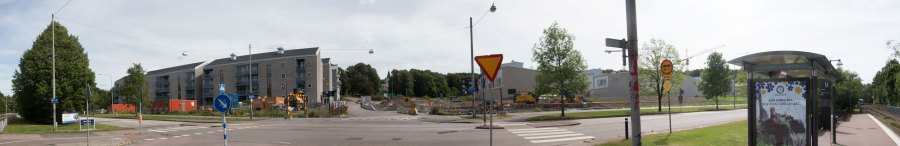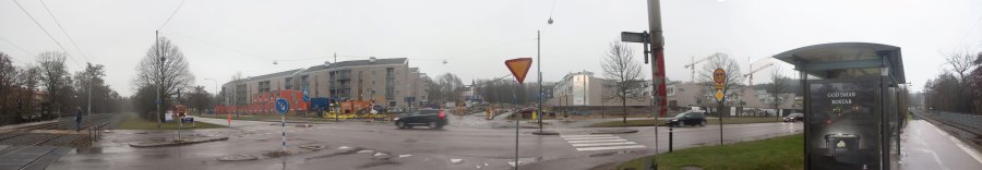Alla hus synliga från denna utsiktspunkt är färdigställda och inflyttade. Vybilden från 2017-12-02 blir därmed den sista i den serie av bilder som publicerats här varje månad sedan september 2014. När den nya infarten till Örgryte Torp är under arbete kommer nya vybilder att publiceras här.