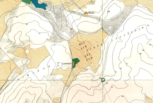 År 1850 uppfördes torpet Gömmet under Vidkärrs gård. Varför torpet har fått ett sådant namn? Frågan är inte lätt att besvara. Ortnamnsforskaren Hjalmar Lindroth gav i sin bok om ortnamnen i Göteborgs och Bohuslän följande kortfattade förklaring. ”Gömme betyder egentligen gömställe” (Lindroth, H. Ortnamnen i Göteborgs och Bohuslän II.). Kanske har man någon gång hittat en ”skattgömma” på platsen eller så användes området som gömställe för smugglare eller rövare. Något svar på denna fråga lär vi nog aldrig få såvida inte framtida undersökningar av domböckerna kan ge någon ledtråd.