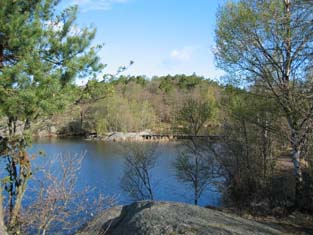 ”Ger man sig ut på näset några famnar från fördämningen, kan man vid lågvatten här i näckens rike skymta stensättningen till en stuga. Det är stenfoten till det gamla torp, som låg här. Namnet är förgätet. Siste innehavaren hette Lars och därför kallades stället Lasses vid Delsjön. Nu spela insjövågor sedan långliga tider både över stenfot och åkerlappar”. (Stenström, F. Örgryte genom tiderna.