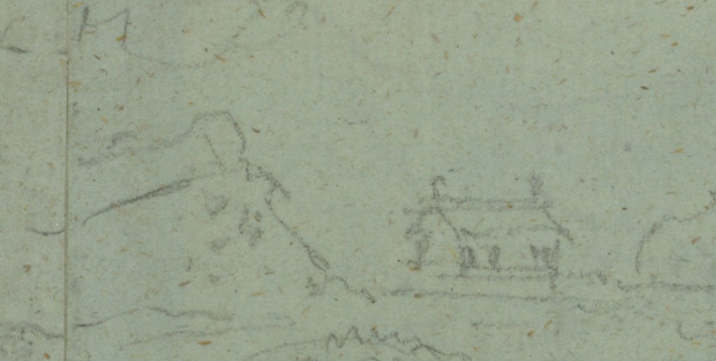 Kallebeck Högar, teckning av Johan August Beyer, ALVIN plattform för digitala samlingar och digitaliserat kulturarv (https://www.alvin-portal.org)